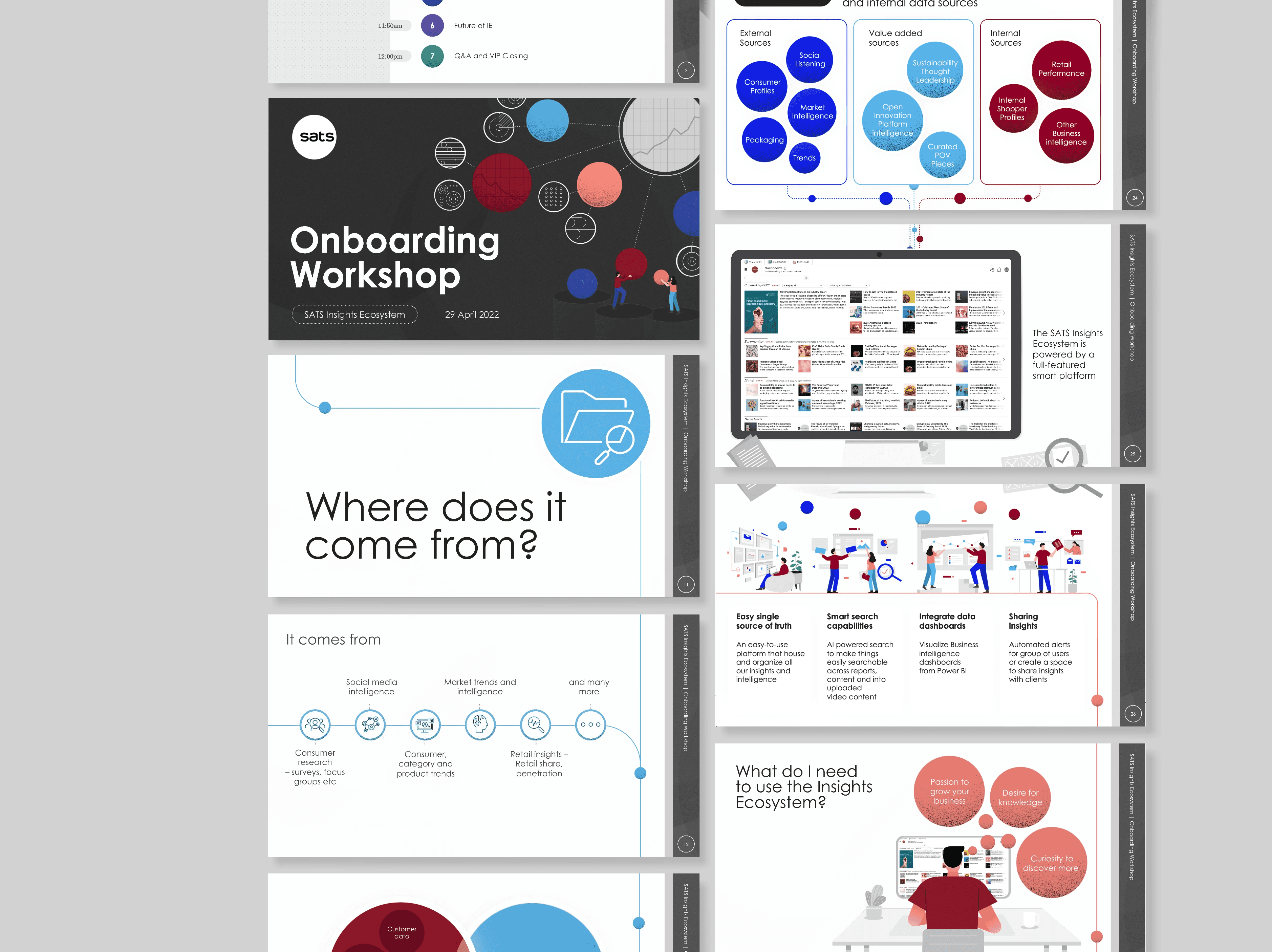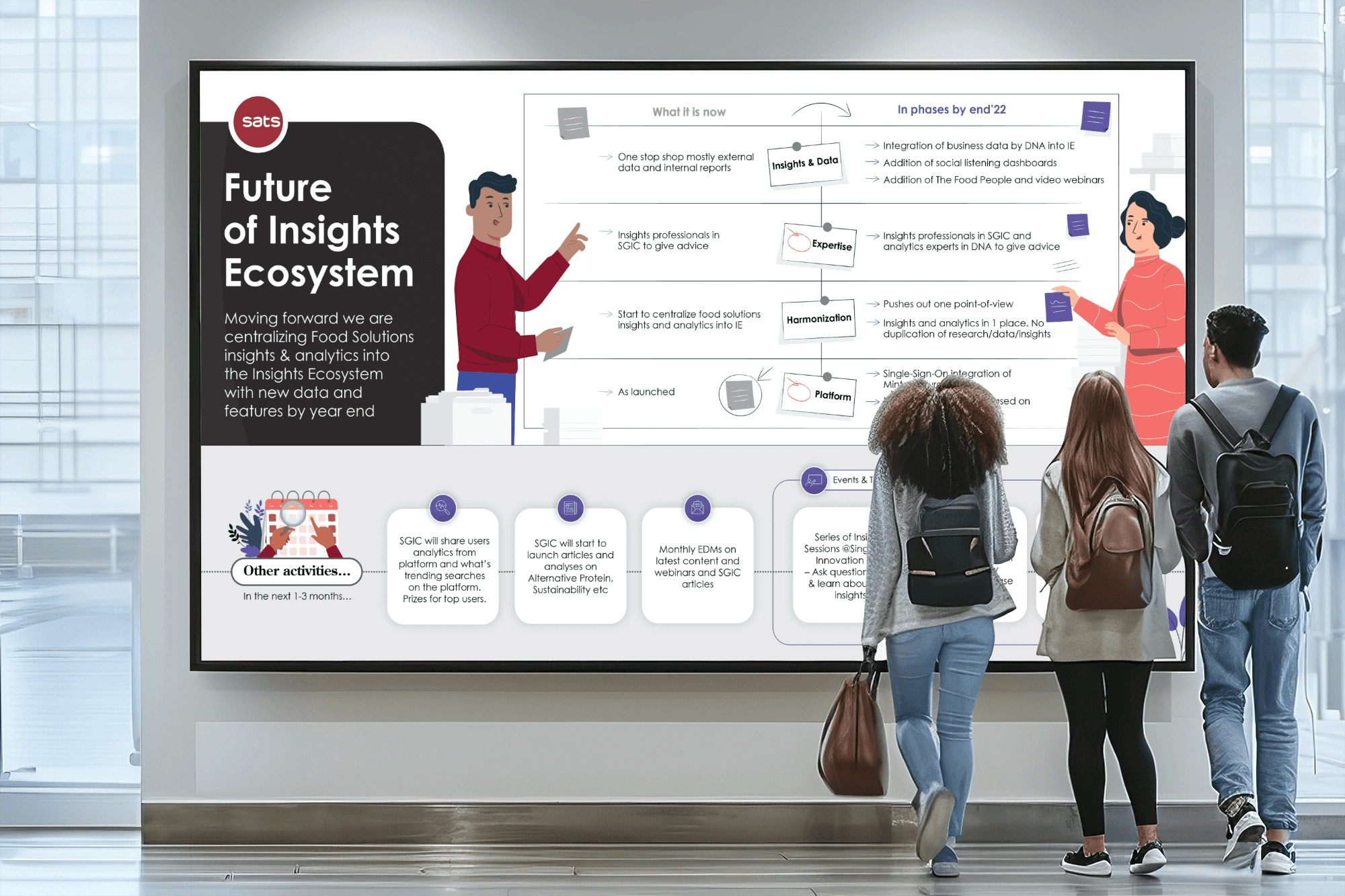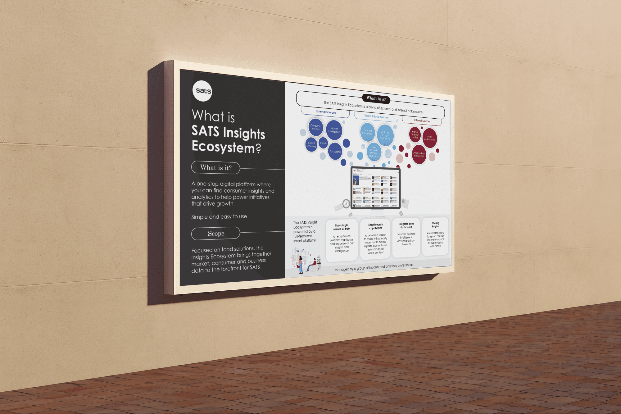 SATS required a compelling way to introduce its new Insights Ecosystem — a platform designed to centralise data, intelligence, and decision-making. The goal was to craft a clear and engaging narrative that simplifies complex data systems while building excitement for internal adoption and stakeholder alignment.