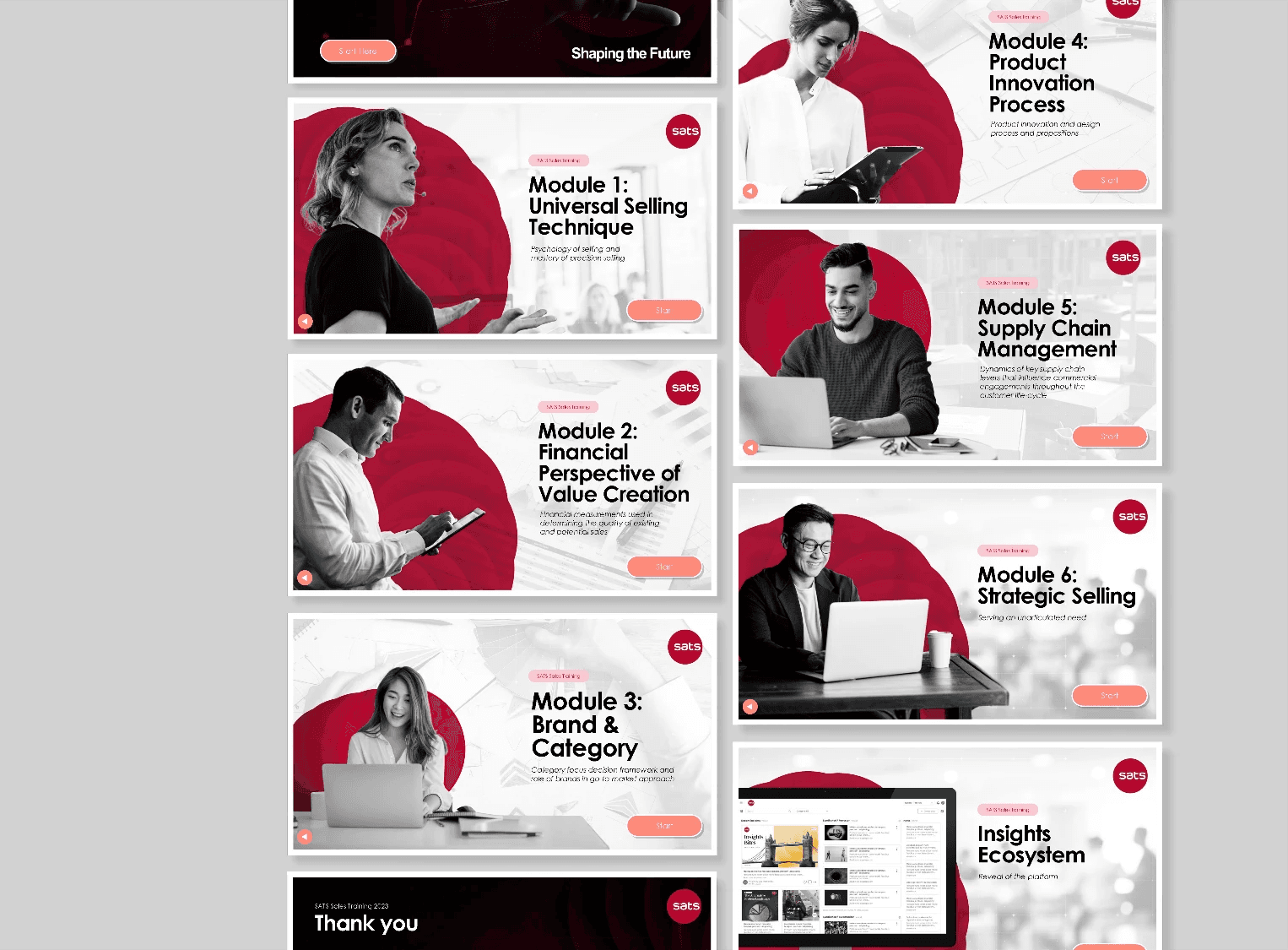 SATS required a scalable and engaging training solution to support its sales and marketing teams. The goal was to transform complex business concepts into a structured, easy-to-navigate learning experience that improves understanding, retention, and practical application.